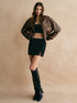 Nervürlü Manşetli Fermuarlı PU Deri Ceket