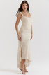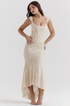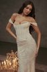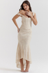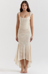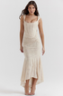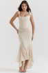 Bej Renkli Octavie Büzgülü Korse Maxi Elbise