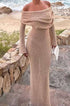 Asimetrik Omuz Açık Dantel Maxi Elbise