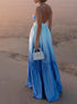 Ombré Mavi Kesik Detaylı Maxi Elbise