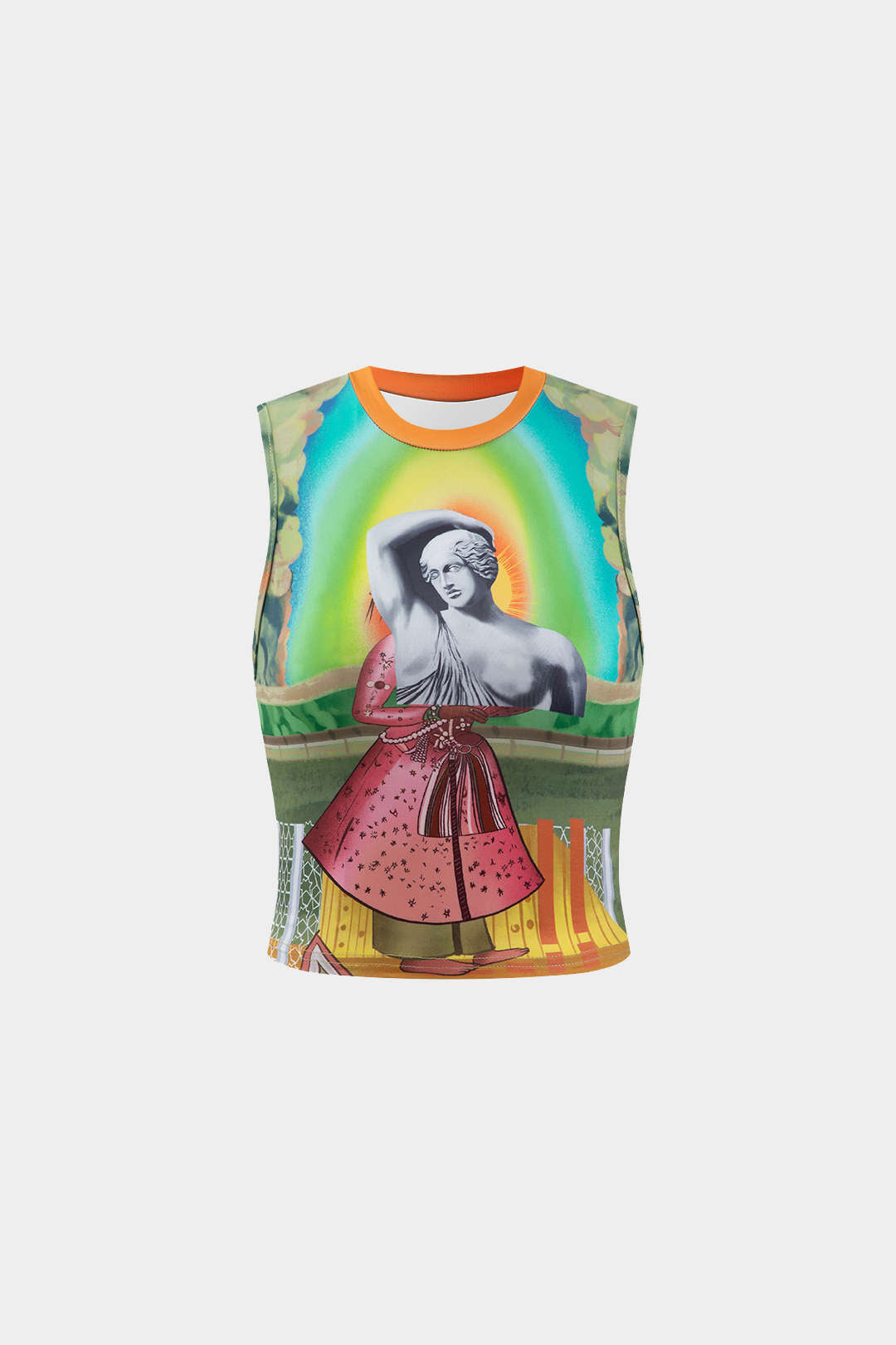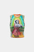 Retro Heykel Baskılı Askılı Bluz