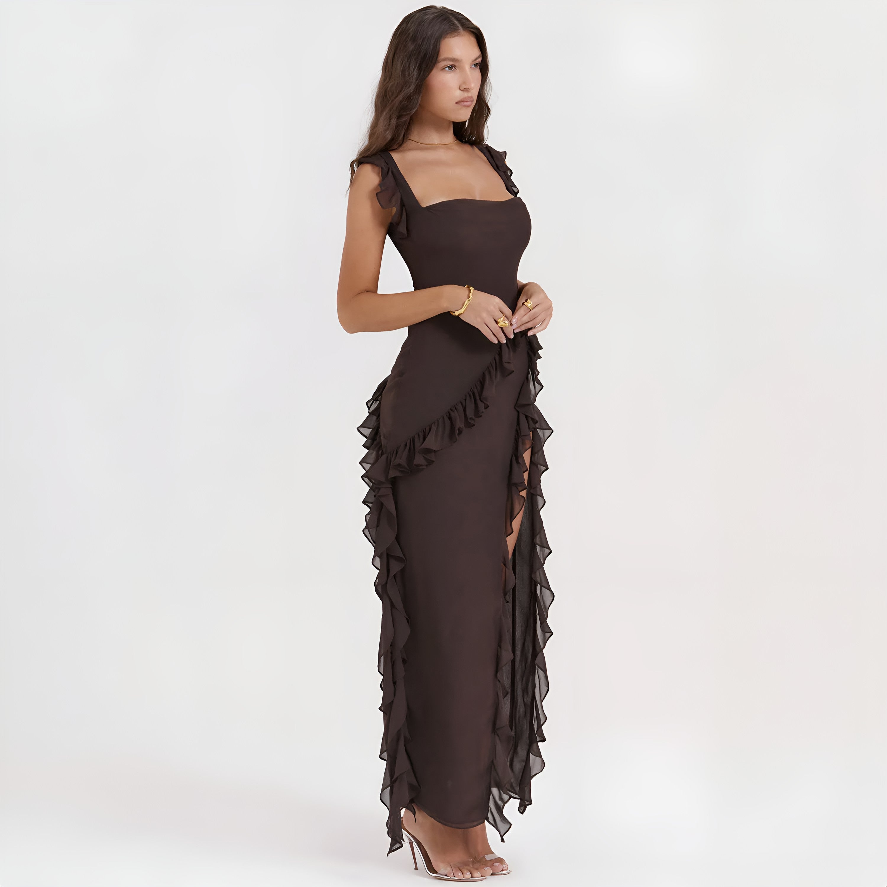 Bu elbise, özel günler ve davetlerde zarafetle öne çıkmak isteyenler için ideal bir seçim sunar. 🤍