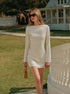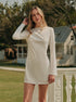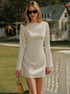 Olyssa Şık Saten Kemerli Kısa Elbise Uzun Kollu