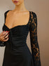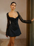Olyssa Kare Yaka Dantel Kollu Kısa Elbise