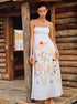 Şık Çiçek Desenli Askısız Uzun Elbise