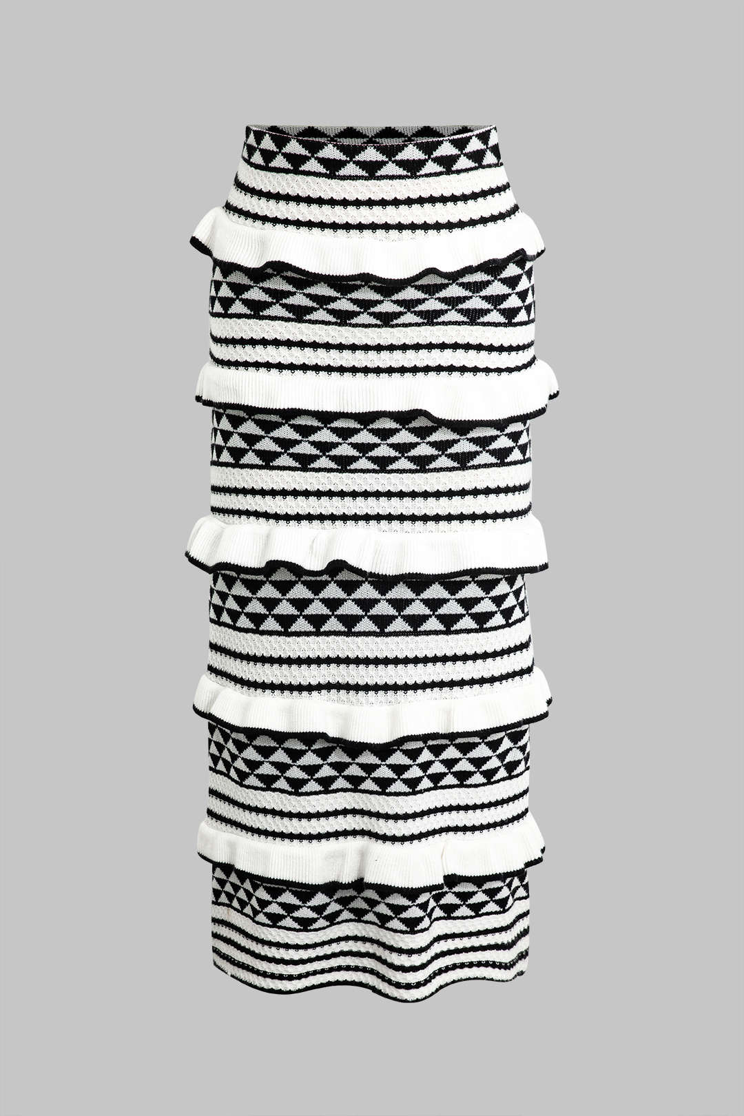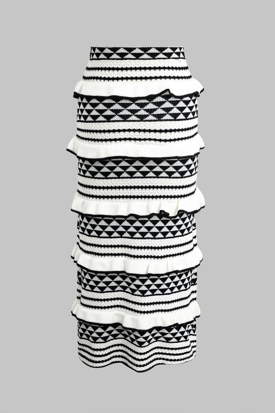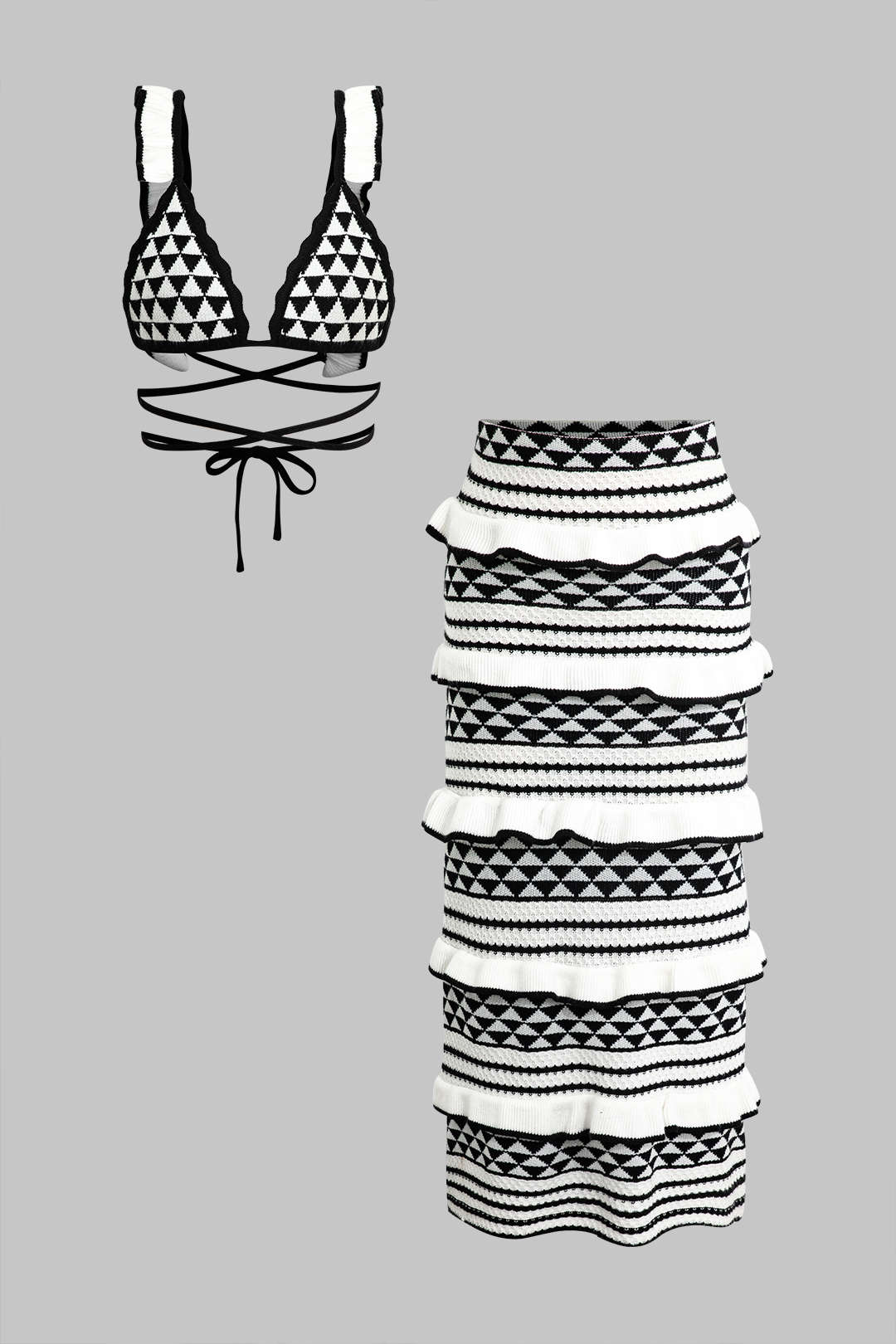 Çizgili Korse Sütyen Üstü ve Katmanlı Ruffle Örgü Midi Etek Seti