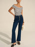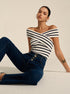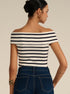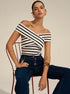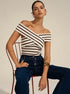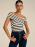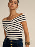 Çizgili Düşük Omuzlu Kırışık Triko Üst