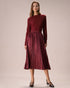 Şarap Kırmızısı Lastikli Bel Pileli Midi Etek