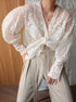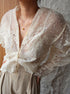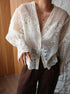 V Yaka Düğmeli Çiçek Desenli Şeffaf Gömlek