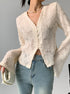 V Yaka Fırfırlı Uzun Kollu Bluz