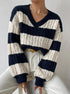 V Yaka Çizgili Kablo Kazak