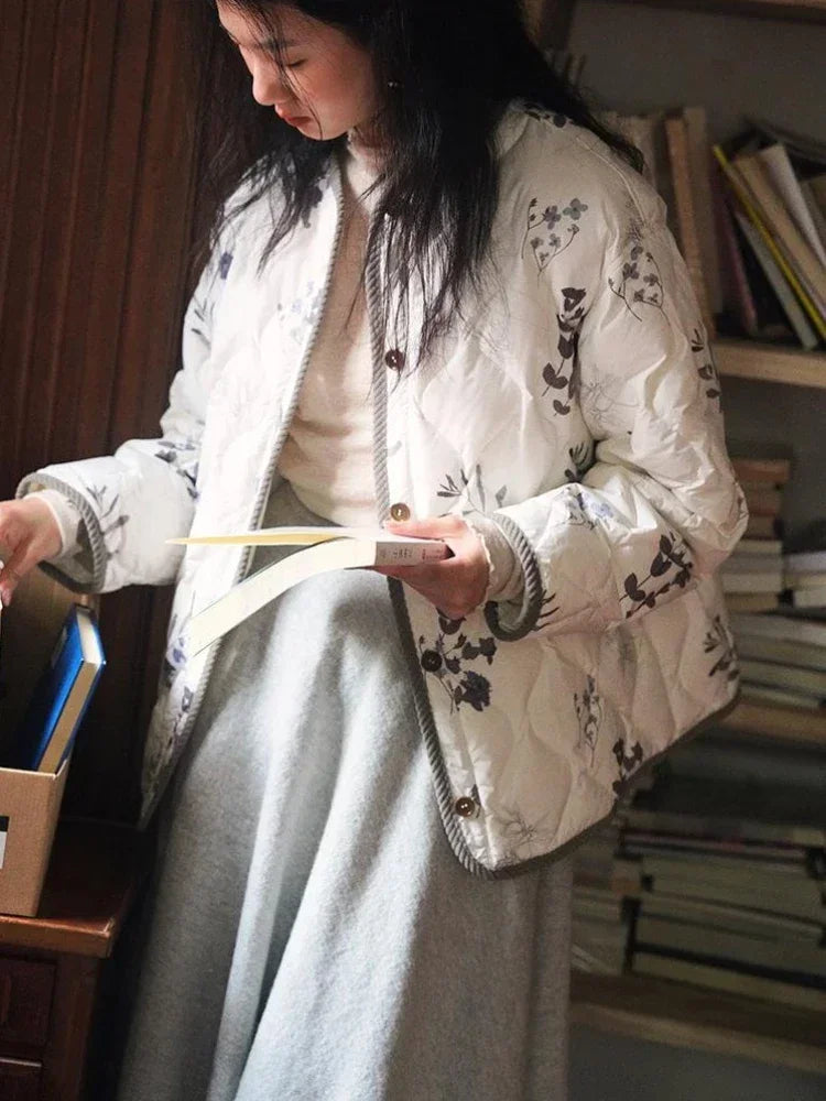 Çiçek Desenli Kapitone Ceket