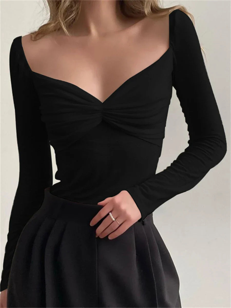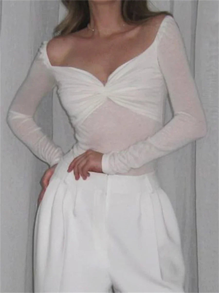 Kalp Yaka Uzun Kollu Transparan Bluz