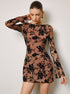 Olyssa Yarı Şeffaf Flok Çiçekli Kısa Elbise